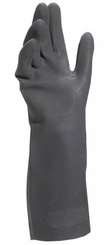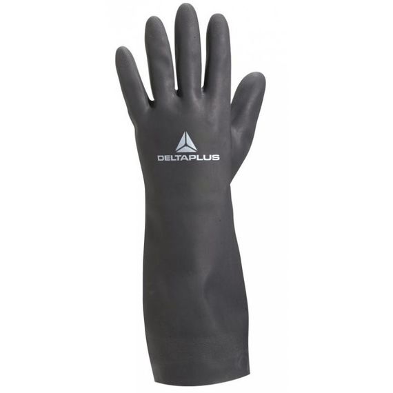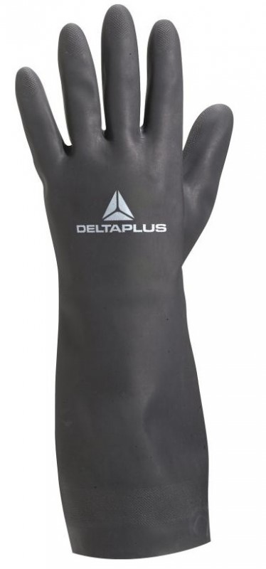 Довгі хімічно стійкі захисні рукавички VE510. Неопренові хімстійкі рукавички з текстурованою зовнішньою поверхнею для попередження проковзування предметів. Внутрішня поверхня захисної рукавички вкрита бавовняним ворсом для комфортнішого одягання та носіння рукавичок. Довжина рукавички дозволяє повністю захистити руку до ліктя. Завдяки неопрену ці рукавички мають відмінні показники захисту від більшості видів хімікатів, змазок та нафтопродуктів. При цьому вони зберігають гарну еластичність навіть в умовах низьких температур.