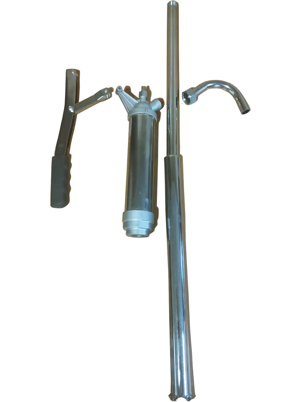 Насос поставляється в комплекті з вигнутим металевим випускним патрубком (виливом) і телескопічним патрубком, що всмоктує, а також стандартним різьбовим адаптером для зливного отвору бочки 1,5 і 2 дюйма (діаметр горловини бочки 46 і 58 мм відповідно). Цей вид насоса є важелевим.