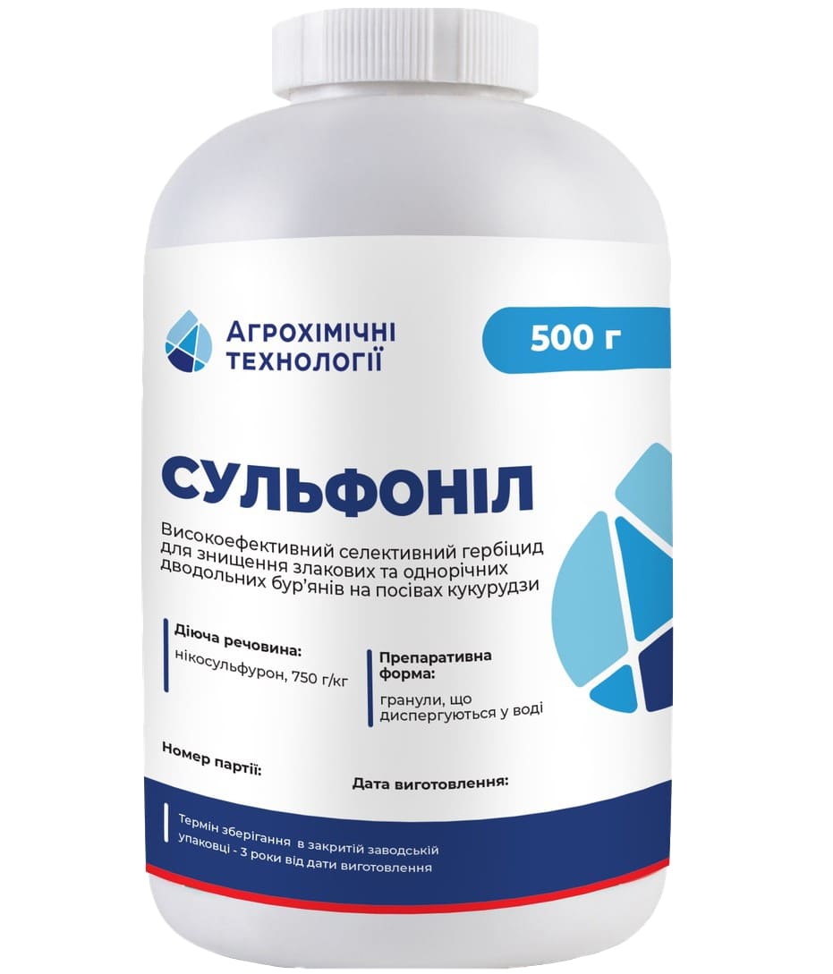 - Сульфоніл призначений для післясходового контролю бур’янів у посівах кукурудзи у фазах від 3 до 10 листків культури.