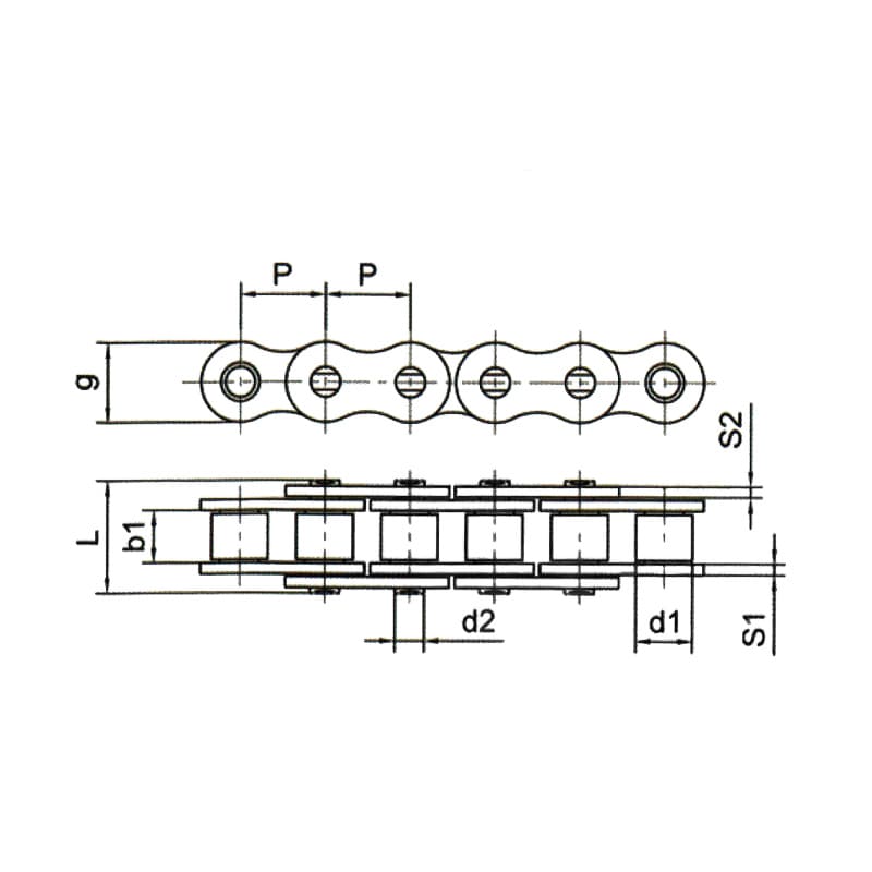 Ланцюг формується з ланок з зовнішніми і внутрішніми пластинами, котрі з'єднуються почергово. На втулки останніх одягнуті ролики, що можуть вільно обертатись і при набіганні на зірочку забезпечують просторове просування ланцюга.