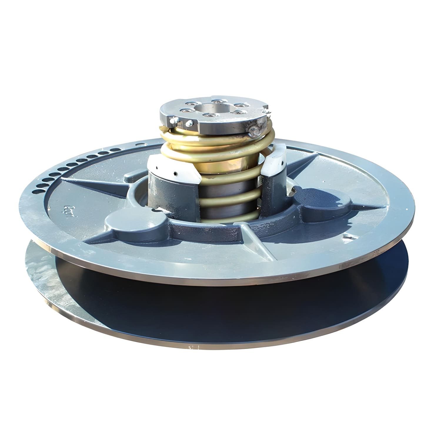 Складальний виріб з рухомої і нерухомої половин шківа з елементами кріплення та додатковими елементами у вигляді муфт ковзання, встановлювальних сегментів і зворотних пружин.