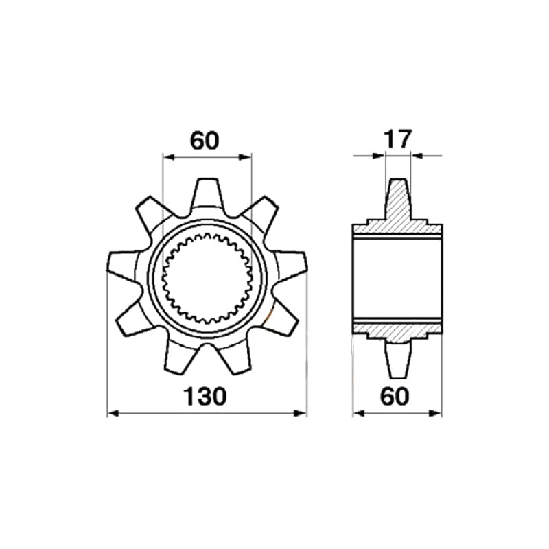 Виготовляється зі сталі. Для з'єднання з валом у центральному отворі нарізані шліци.