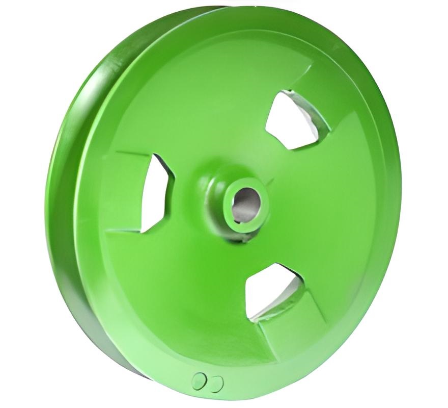 Виріб складної просторової форми з однією або кількома клиноподібними канавками на боковій поверхні (для встановлення ременів) та елементами кріплення у центральному отворі. Поверхня для запобігання атмосферним впливам пофарбована.