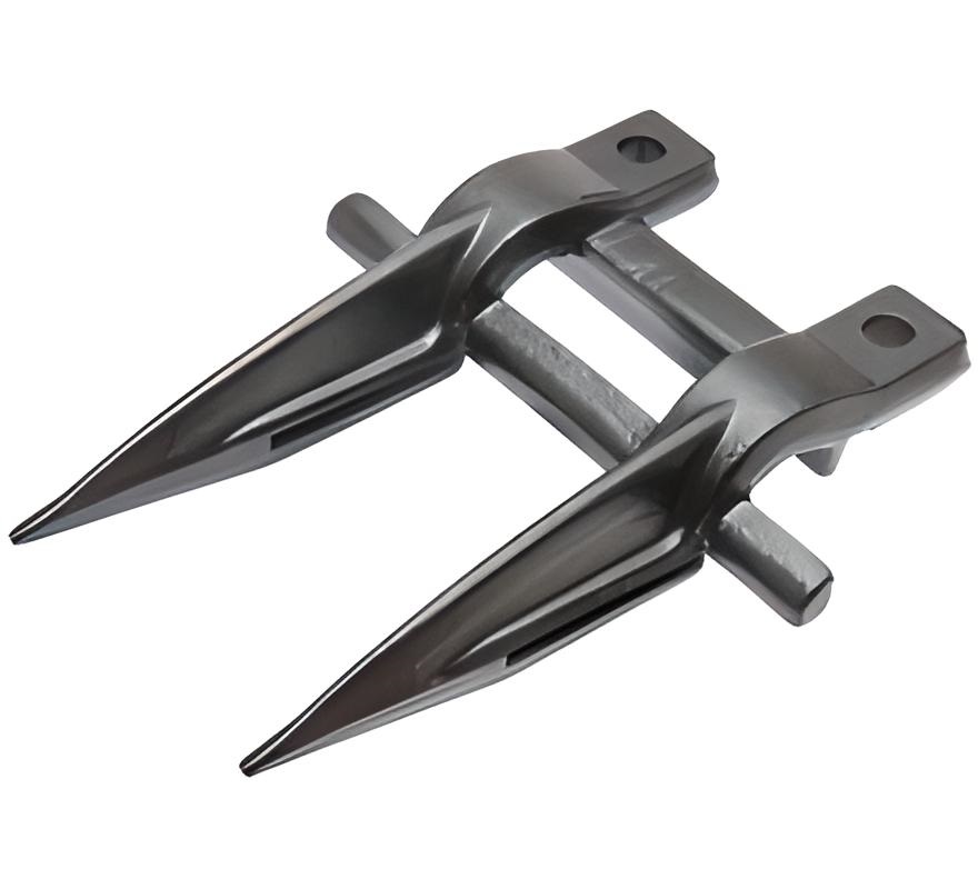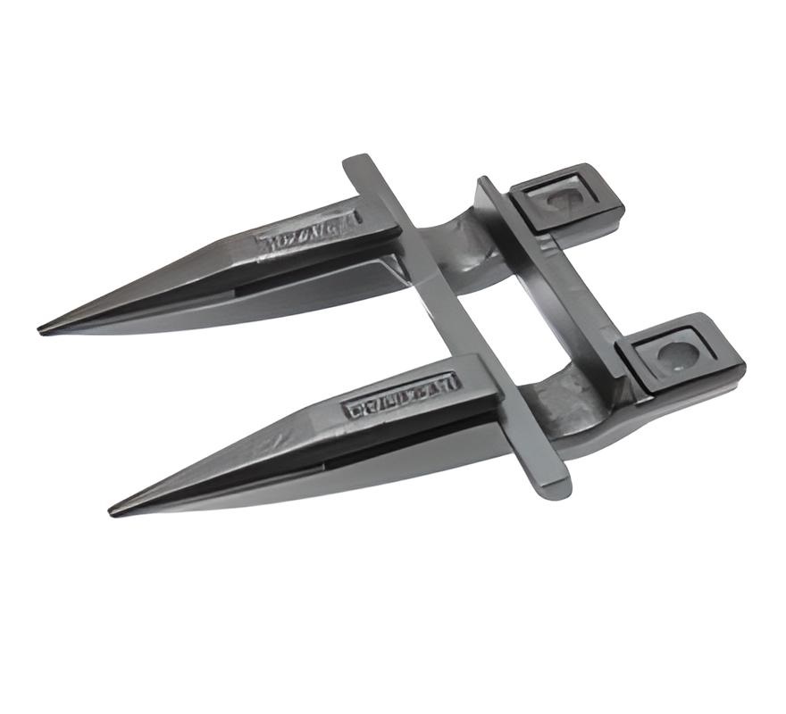 Кована сталева деталь складної просторової форми у вигляді двозуба. Біля основи головки виготовлені 2 отвори для кріплення до пальцевого бруса.