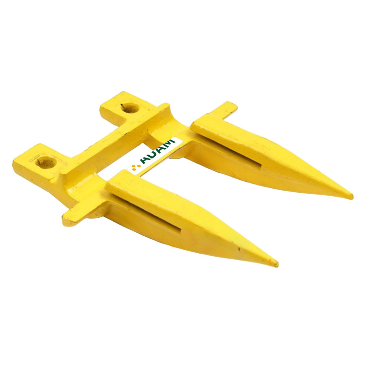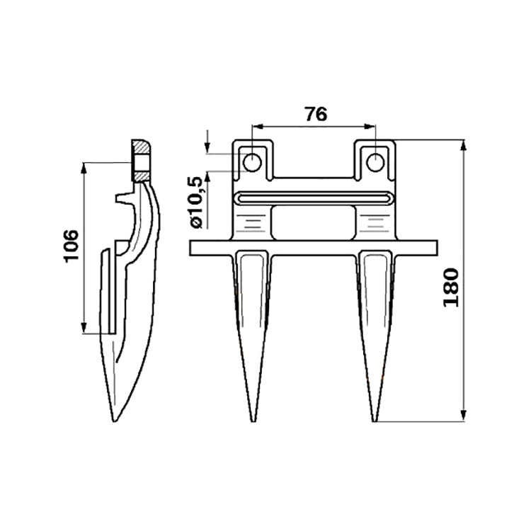 Кована сталева деталь складної просторової форми у вигляді двозуба. Біля основи головки виготовлені 2 отвори для кріплення до пальцевого бруса.